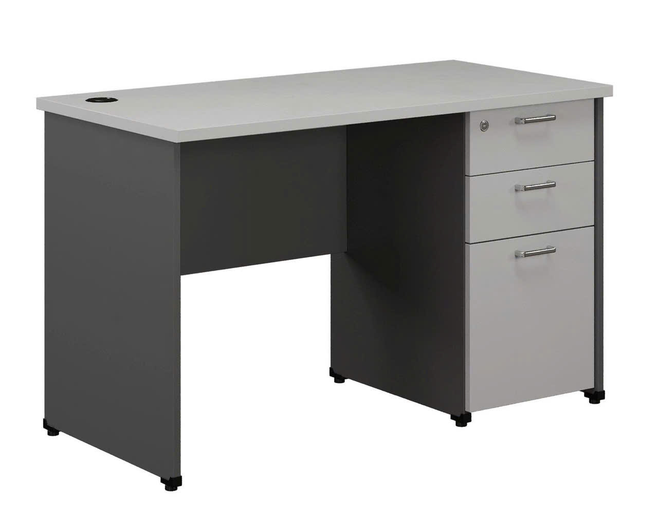 Bàn làm việc nhân viên gỗ công nghiệp Melamine, có hộc liền sát đất gồm 3 ngăn kéo có khóa chìa.