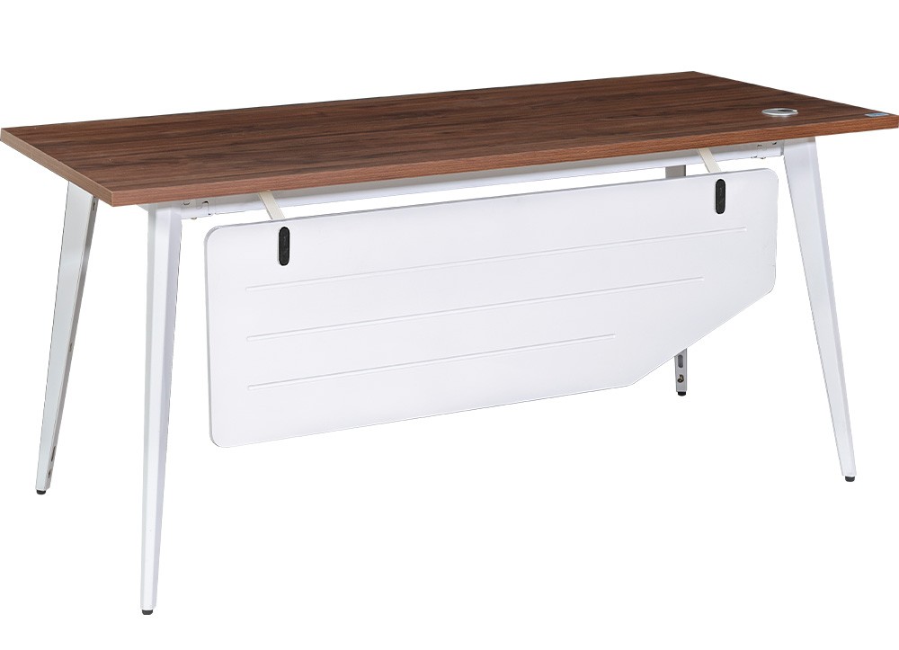 Bàn làm việc sử dụng khung thép dập định hình sắc nét, kết hợp sơn tĩnh điện màu trắng sang trọng và bền bỉ.