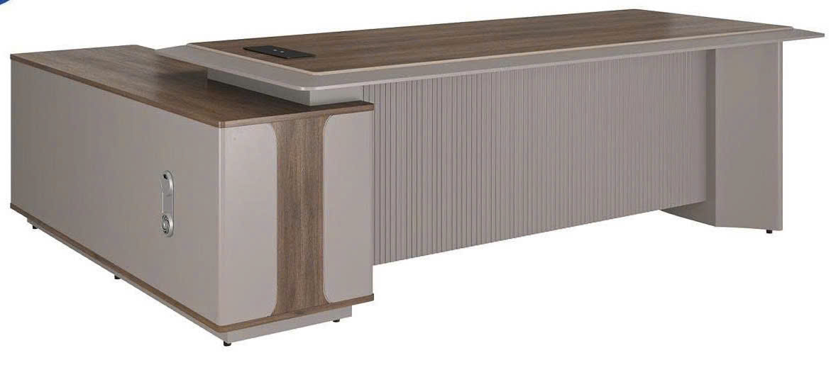 Mua ngayBàn lãnh đạo LUXURY SUPREME S2 chất liệu gỗ sơn+ melamine Mặt bàn có 01 nắp hộp điện, Kiểu dáng hiện đại, sang trọng, góc cạnh mặt bàn được bo tròn đều. Tủ phụ có kèm khóa cảm ứng vân tay tại ngăn kéo.