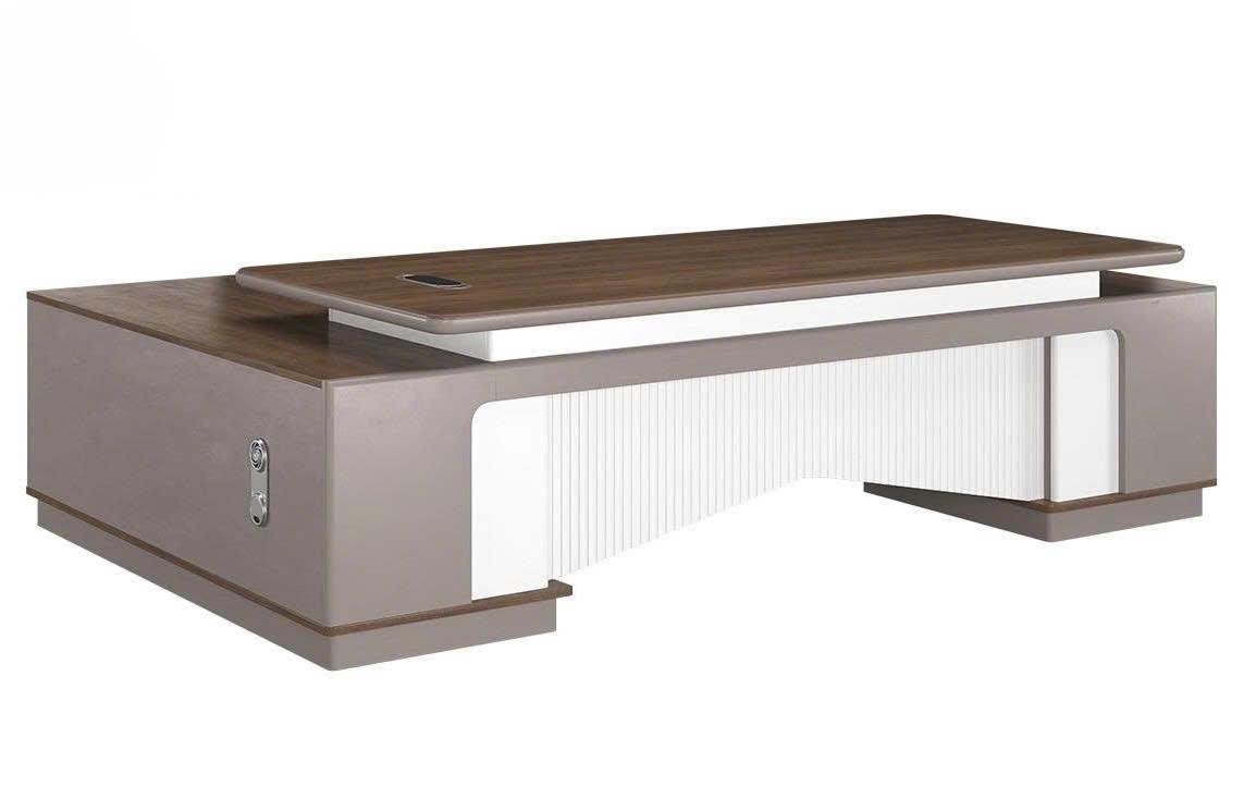Mua ngayBàn lãnh đạo LUXURY SUPREME S5 được làm từ chất liệu gỗ sơn kết hợp với Melamine. Mặt bàn hình tang trống có 01 nắp hộp điện, kiểu dáng hiện đại, sang trọng. Góc cạnh mặt bàn được bo tròn đều tạo điểm nhấn đặc sắc cho sản phẩm. Tủ phụ có kèm khóa cảm ứng vân tay tại ngăn kéo.
