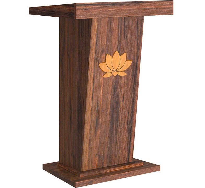 Bục tượng Bác trang trí họa tiết hoa sen - Biểu tượng gắn liền với hình tượng chủ tịch Hồ Chí Minh. Chất liệu là gỗ công nghiệp dán giấy phủ sơn PU.