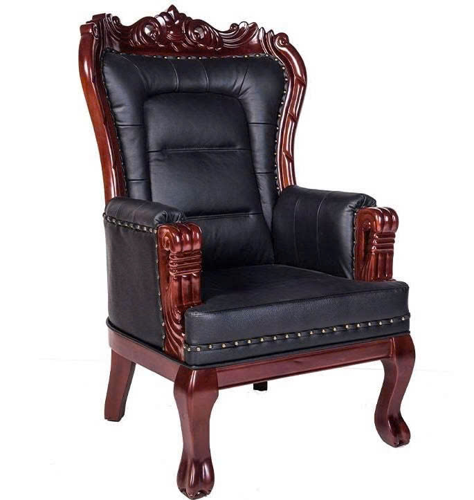 - Tay ghế được làm bằng gỗ tự nhiên, phía trên tay ghế được bọc da thật