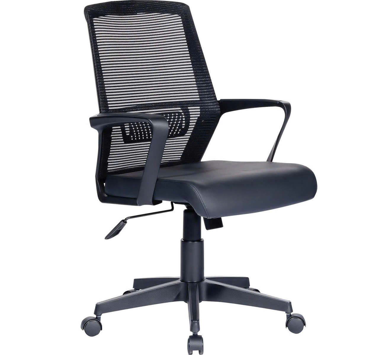 Ghế lưới cao cấp đệm mút xốp bọc PVC, tựa nhựa bọc vải lưới, tay ghế bằng nhựa cố định.