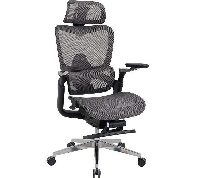 Ghế công thái học cao cấp, tựa ghế có khả năng ngả hãm nhiều góc độ, eo tựa có thể điều chỉnh chiều cao, chiều sâu và góc độ lựa theo lưng người ngồi thoải mái nhất. Tay ghế 4D, mặt tay bằng PU mềm có khả năng xoay 360 độ, đệm có thể điều chỉnh chiều sâu.