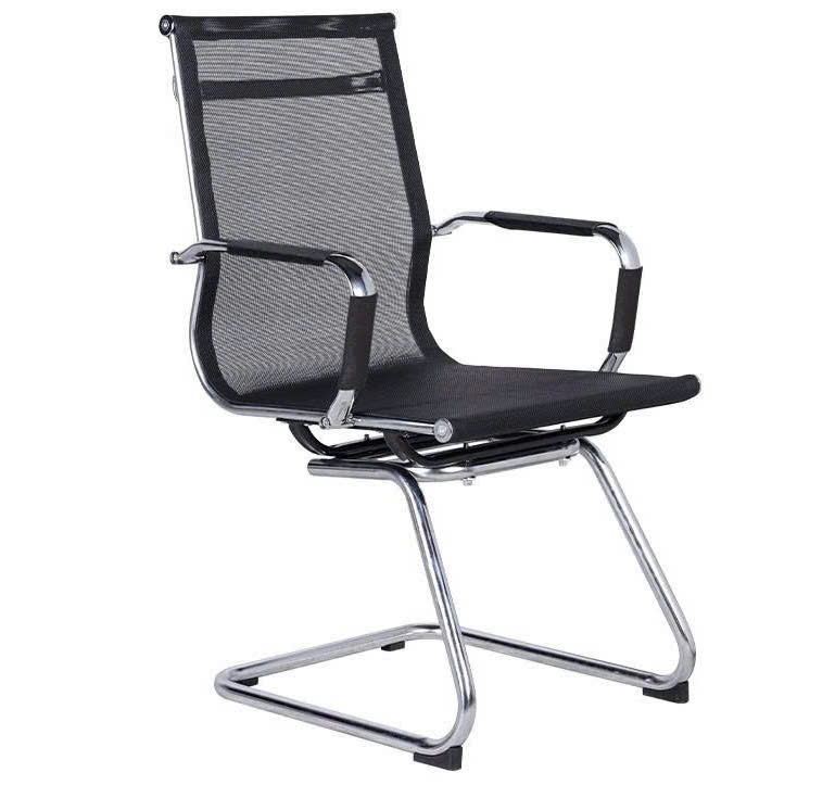 Ghế phòng họp chân quỳ bằng ống thép tròn mạ Ni-Cr, tựa lưng và đệm ghế sử dụng khung thép mạ Ni-Cr kết hợp vải lưới đặc biệt có độ chịu lực cao giảm sự tích nhiệt mang lại cảm giác dễ chịu khi sử dụng. Tay ghế sử dụng thép mạ Ni-Cr bọc lưới.