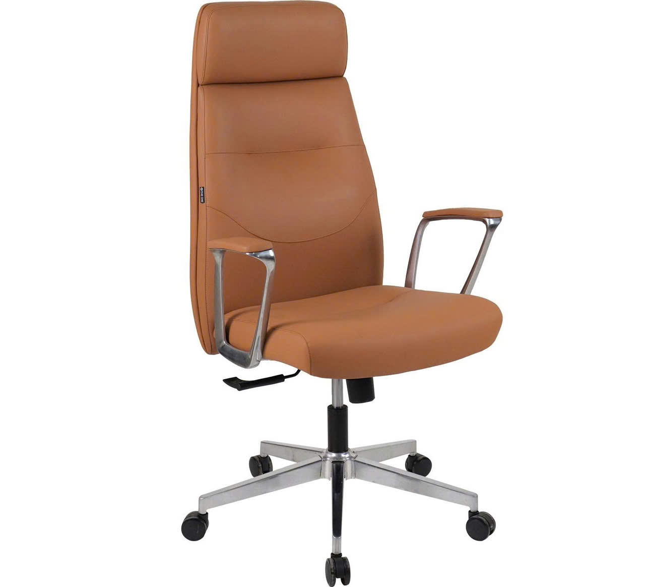 Ghế lãnh đạo cao cấp, đệm tựa bọc da tại mặt tiếp xúc với người sử dụng hoặc PVC, kiểu dáng ghế hiện đại, sang trọng, tay hợp kim nhôm sáng bóng có ốp bọc pvc cùng màu đệm tựa. Ghế có thể ngã hãm nhiều góc độ để thư giãn. Chân thép mạ.