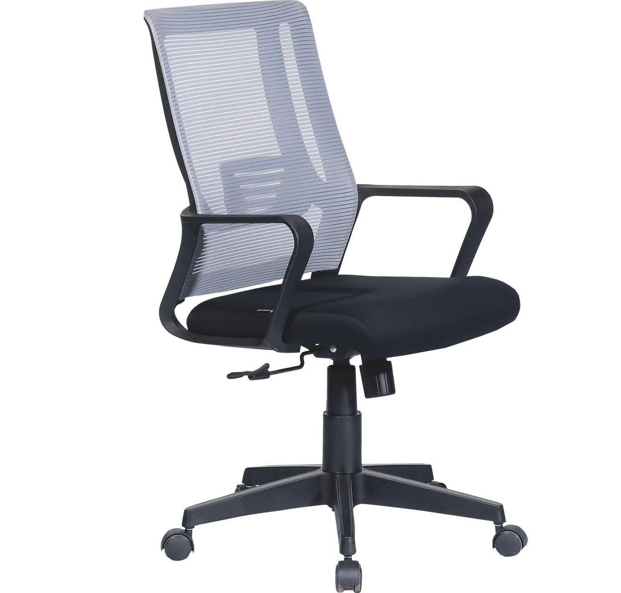 Ghế xoay văn phòng dành cho nhân viên, tựa ;lưng ghế làm bằng khung nhựa căng lưới thoáng mát, đệm ngồi bằng mút bọc vải lưới êm ái, mềm mại.