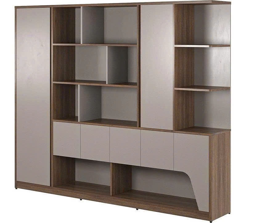 Bên trong cánh dài có suốt treo áo. Ở dưới có 2 khoang cánh kín để lưu trữ các hỗ sơ quan trọng. Phần không gian mở thiết kế có nhiều ô để tài liệu và bố trí các vật dụng trang trí trông rất trang nhã và đẹp mắt.