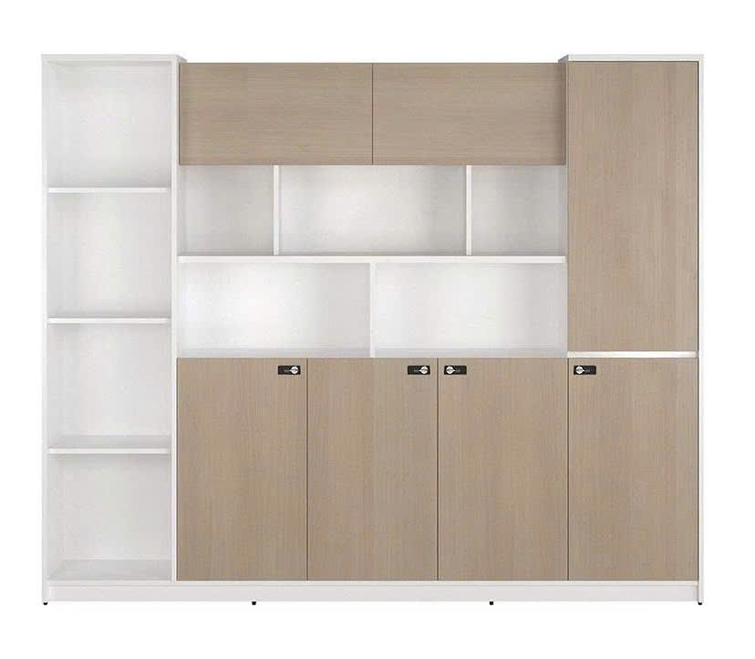 Tủ được thiết kế các khoang cánh kín để lưu trữ các hỗ sơ quan trọng, sử dụng khóa số. Phần không gian mở thiết kế có nhiều ô để tài liệu và bố trí các vật dụng trang trí trông rất trang nhã và đẹp mắt.